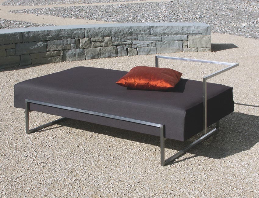 Daybed mit Gestell in Chromstahl.